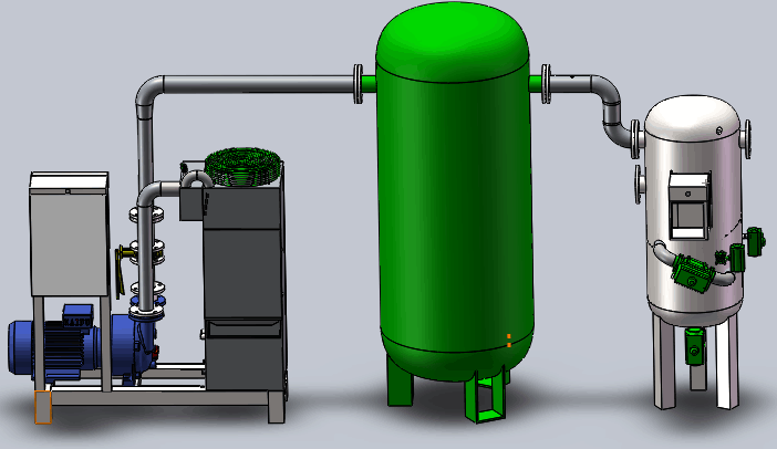 2、工作液通过冷却风扇进行散热,降低温度重新回到水环泵内继续使用,工作液可以重复使用,节约用水,同时解决排污环保问题。