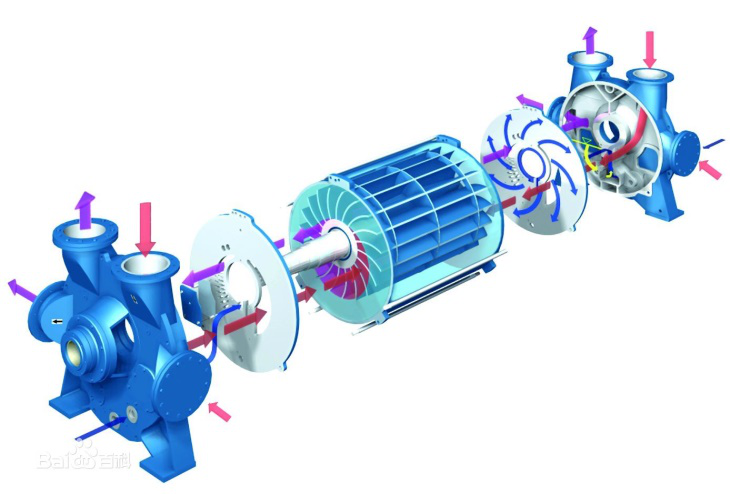 水环式真空泵构成:电机、叶轮、圆盘、机械密封、泵壳组成,结构简单。