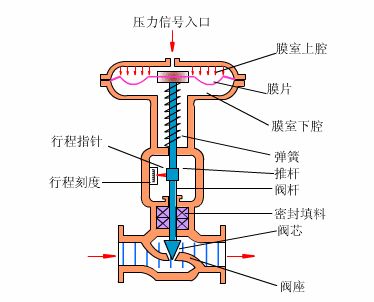 针阀的气体流通管路上设置有小的孔口,调节针状密封轴和孔口的距离就可以连续改变流路的导通率,以达到控制气体流量的目的。下图是针阀的示意图。
