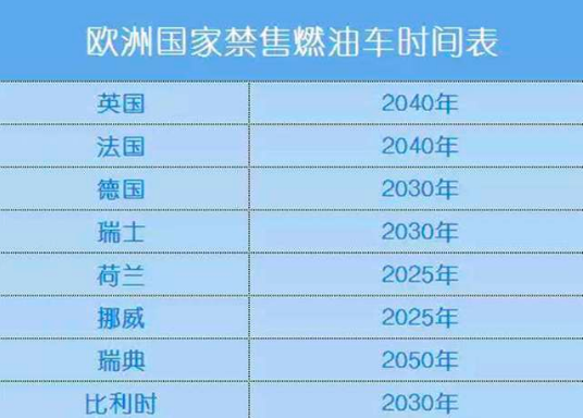 我们先了解一下国外燃油车禁售时间,在国外好几个国家都已经出台了燃油车禁售的相关时间表。所以很多有先见之明的车企,已经早早地布局新能源领域。