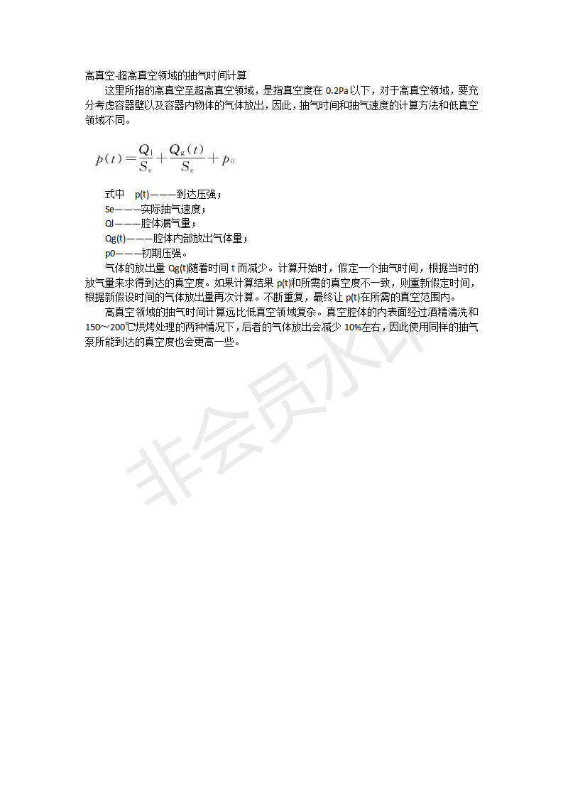 高真空-超高真空领域的抽气时间计算