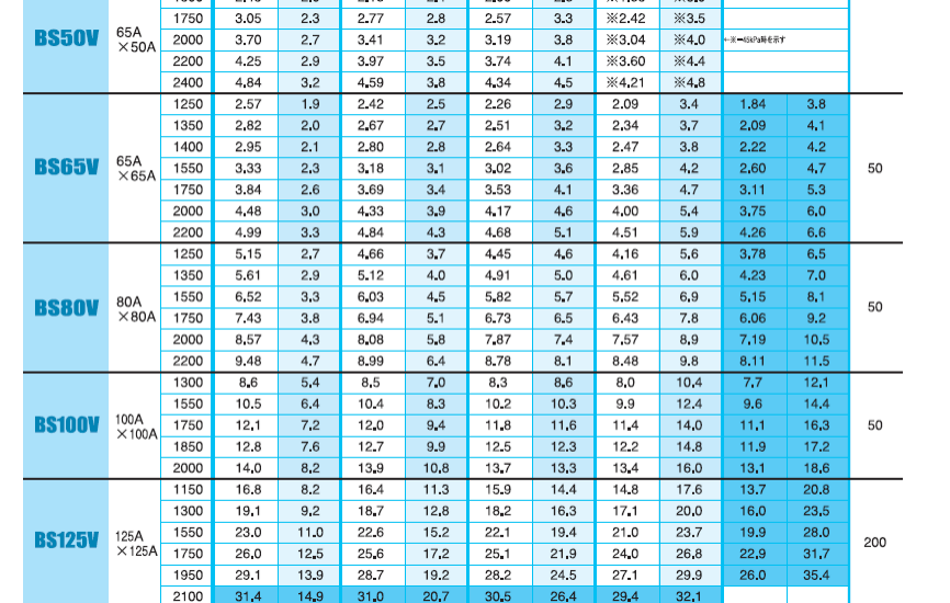 以上结果为程序自动计算,根据得出的计算结果,请使用选型表格,参考ANLET原厂公司型录数据,填具以下参数,以BS-V系列为例,参考型录表格,选出相对应的机型输入相关参数后,可以得出需使用的台数。