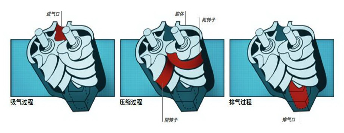 机体工作原理:螺杆真空泵机体是利用一对螺杆,在泵壳中作同步高速反向旋转而产生的吸气和排气作用的抽气设备。